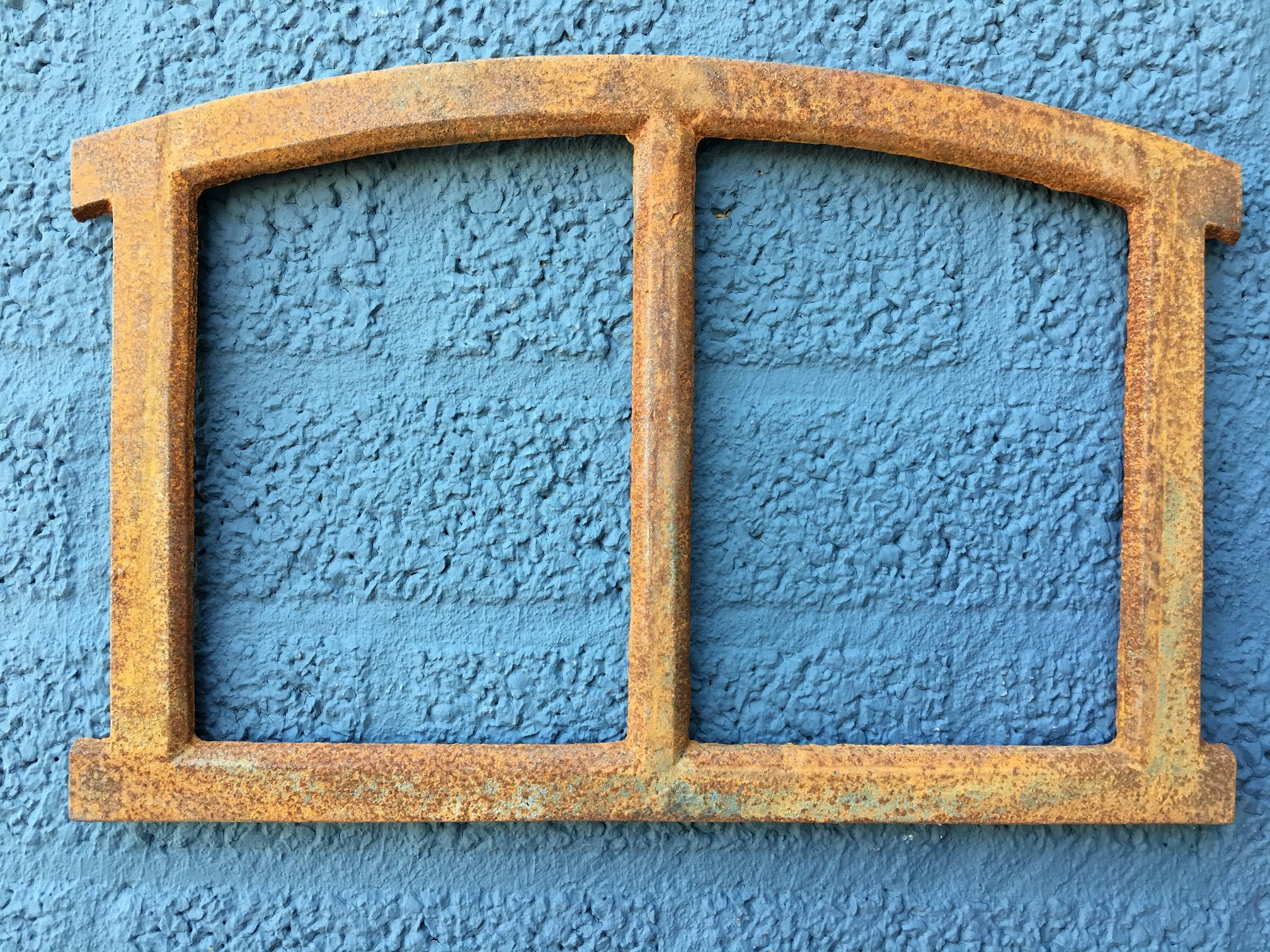 A beautiful antique calf stable window, iron window with beautiful style arches and 2 symmetrical pane layouts.
