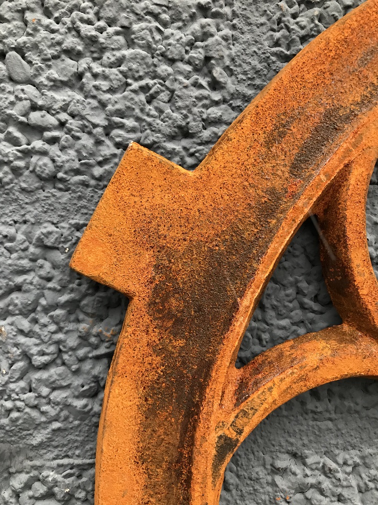 If you do not like the rusty rust look: cast iron has the property of binding only surface rust (oxidation), which can be easily brushed off.