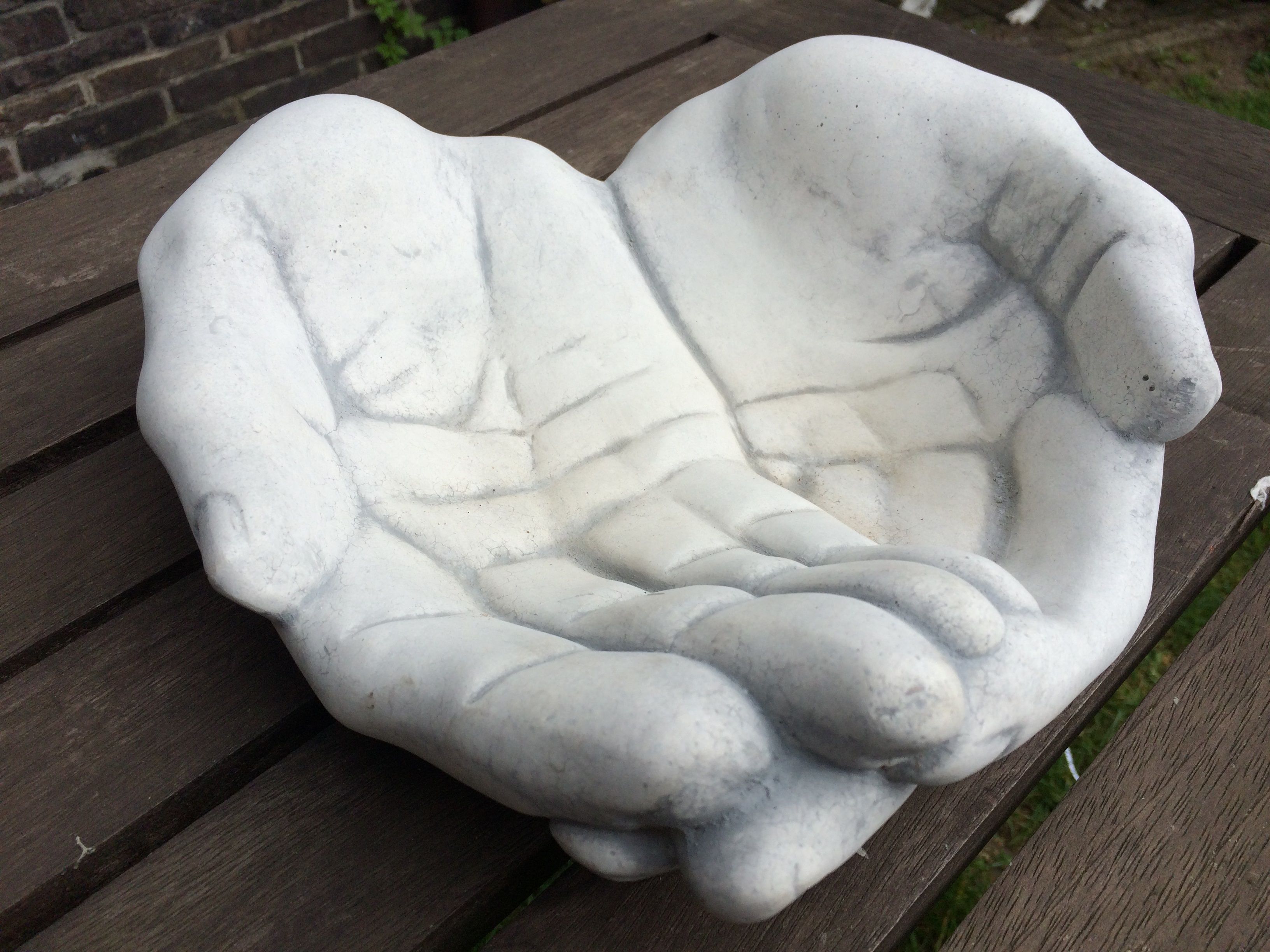 Hands as Bowl / Bird Bath - 30 cm - Stone