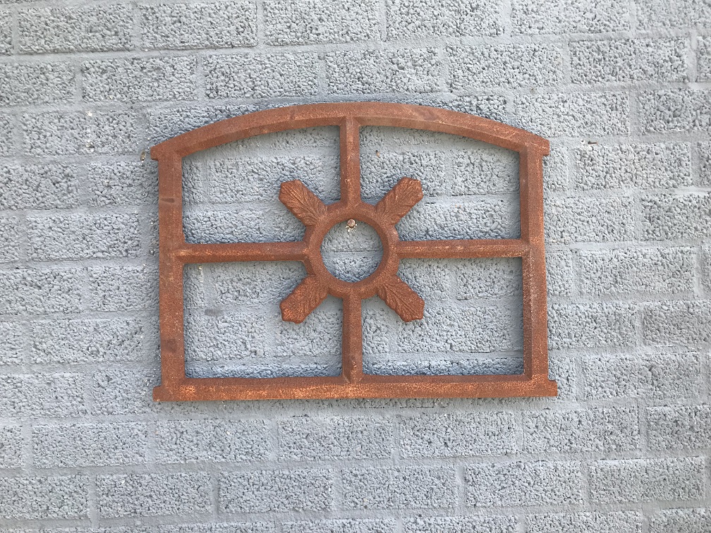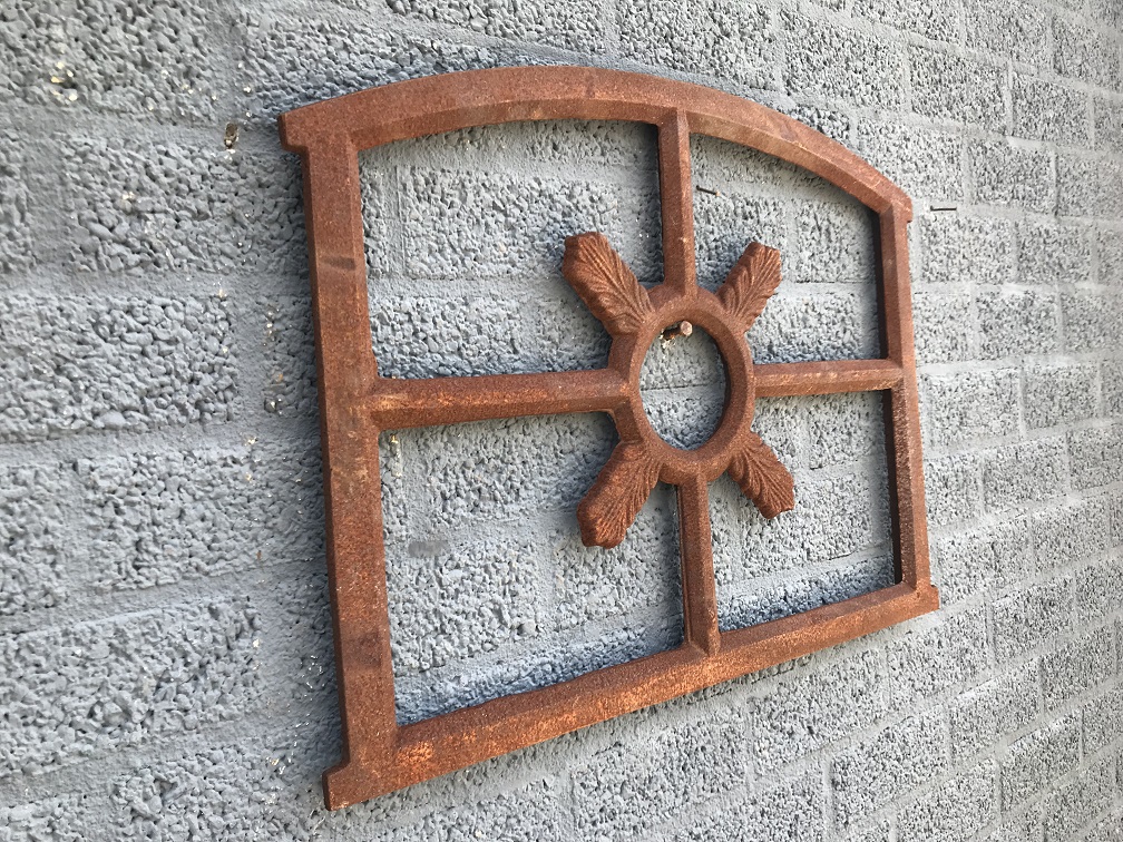 This is a beautiful stable window that you can build in, but also use as wall decoration. It has a rustic surface and is made of cast iron. The middle has the appearance of an oak leaf which makes this a natural and graceful window.