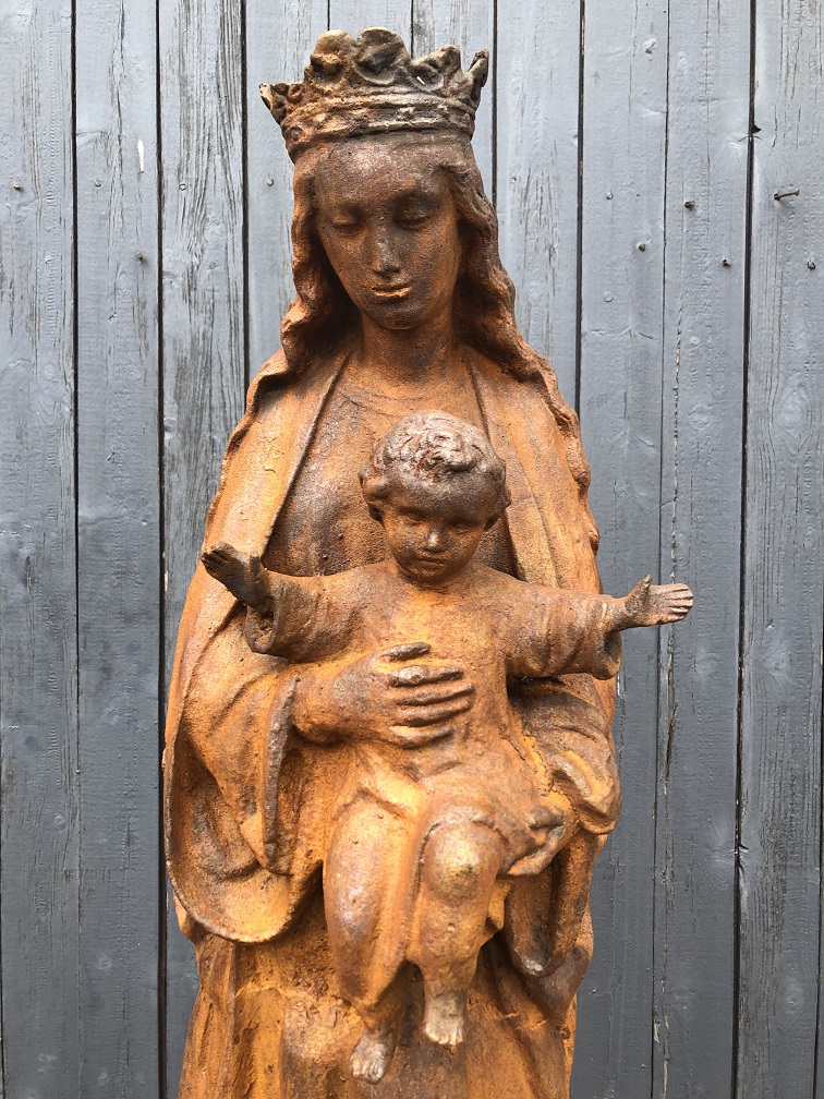 1 x cast iron statue of Mary with Jesus: high approximately 92 cm, 40 cm wide, 40 cm deep, weight approximately 55 kg