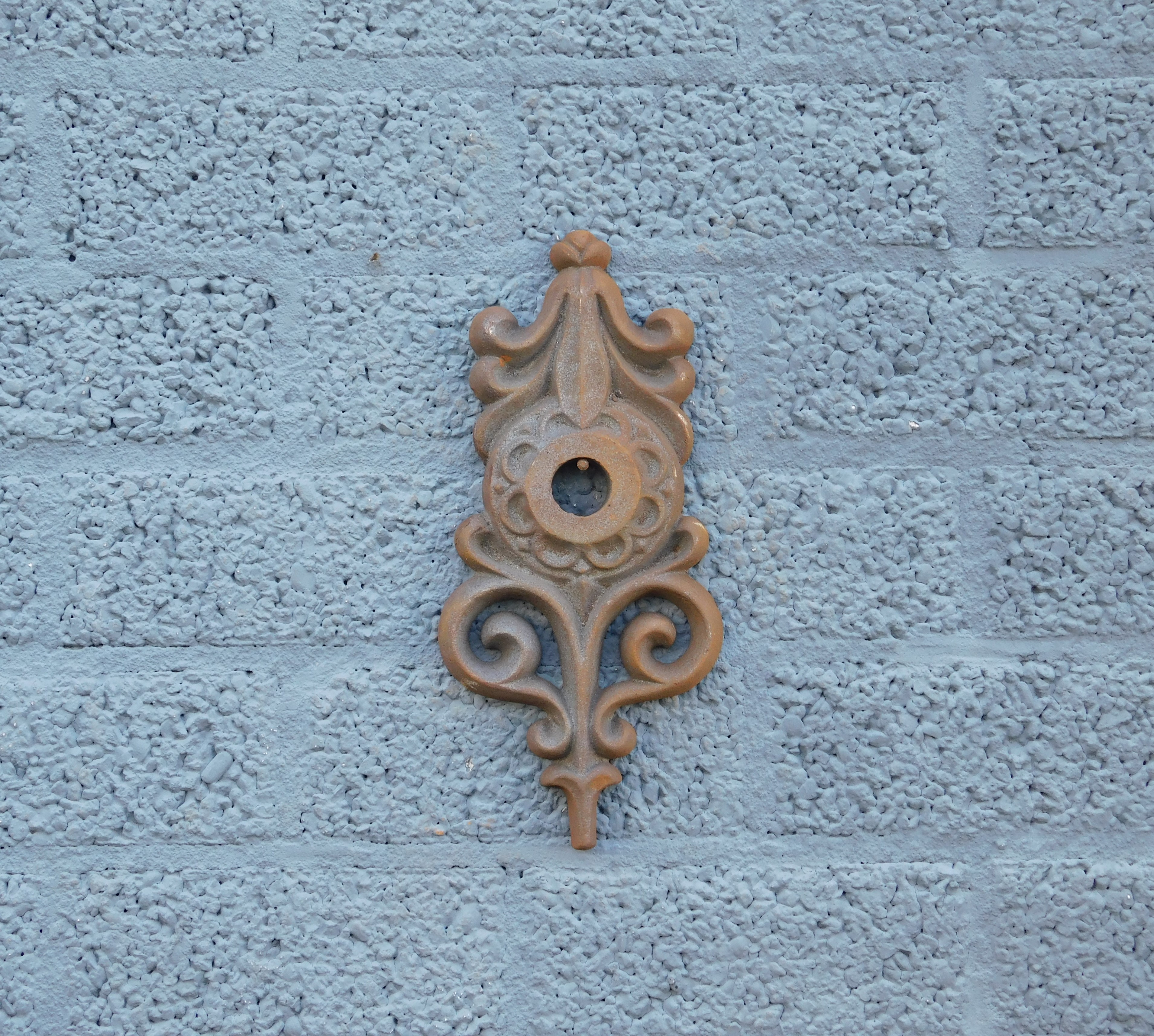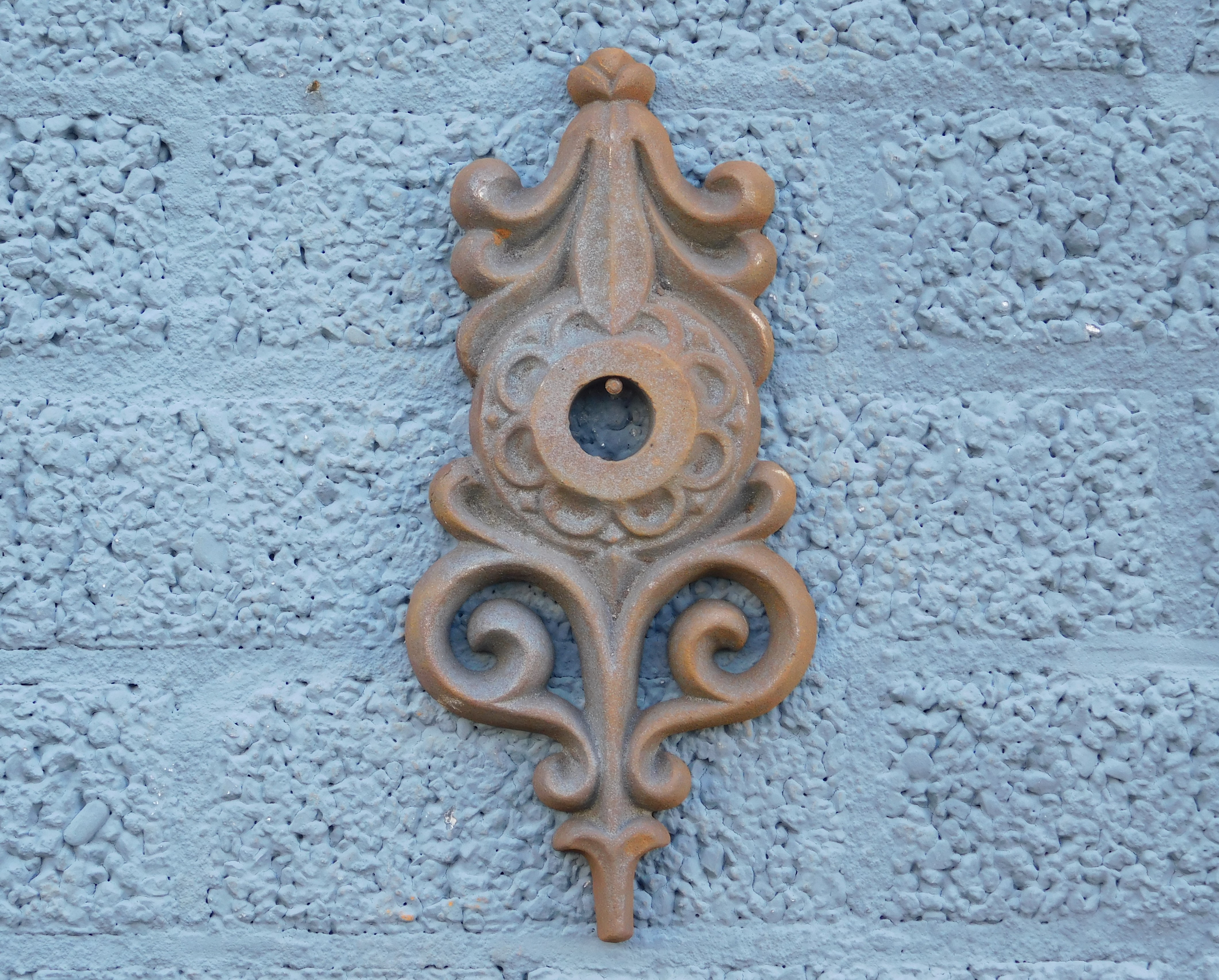Enhance your walls with this noble rusty cast iron flower and beautify your building immensely.