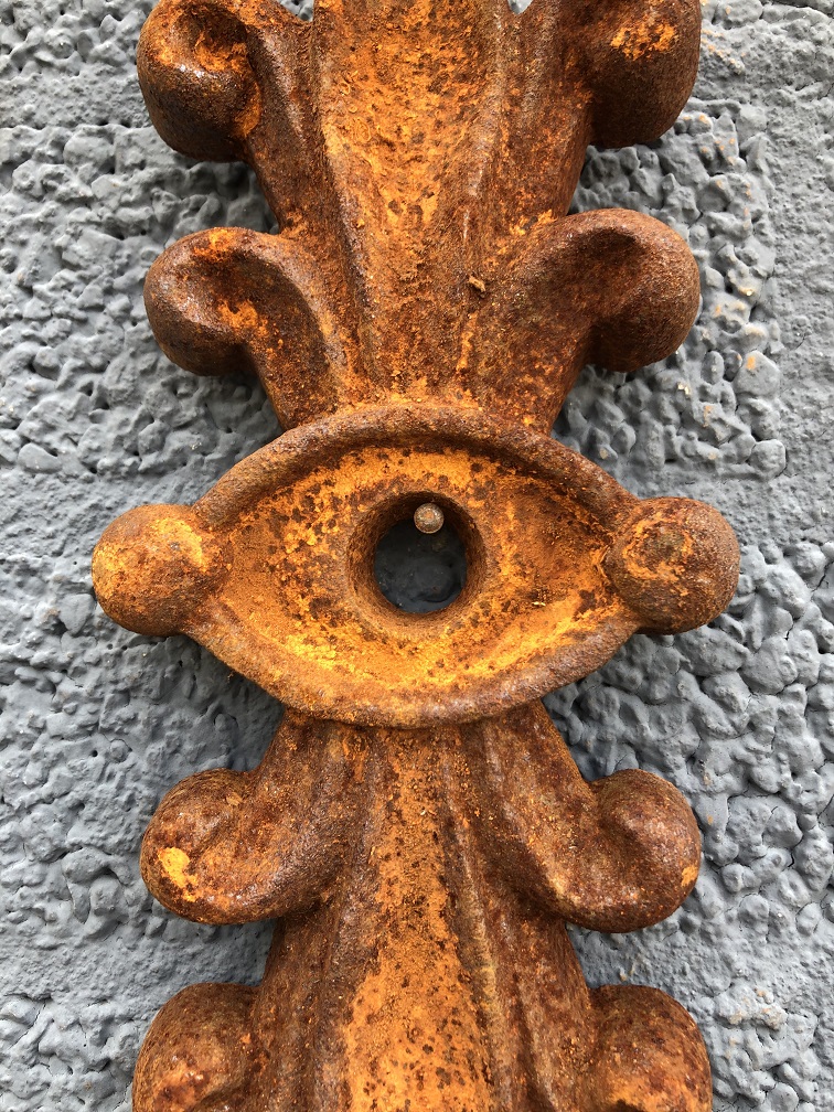 Wall anchor, beam anchor, cast iron, decorative shape.