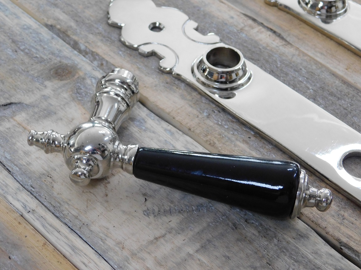 Set of door hardware - PZ92 - nickel - with black porcelain handle