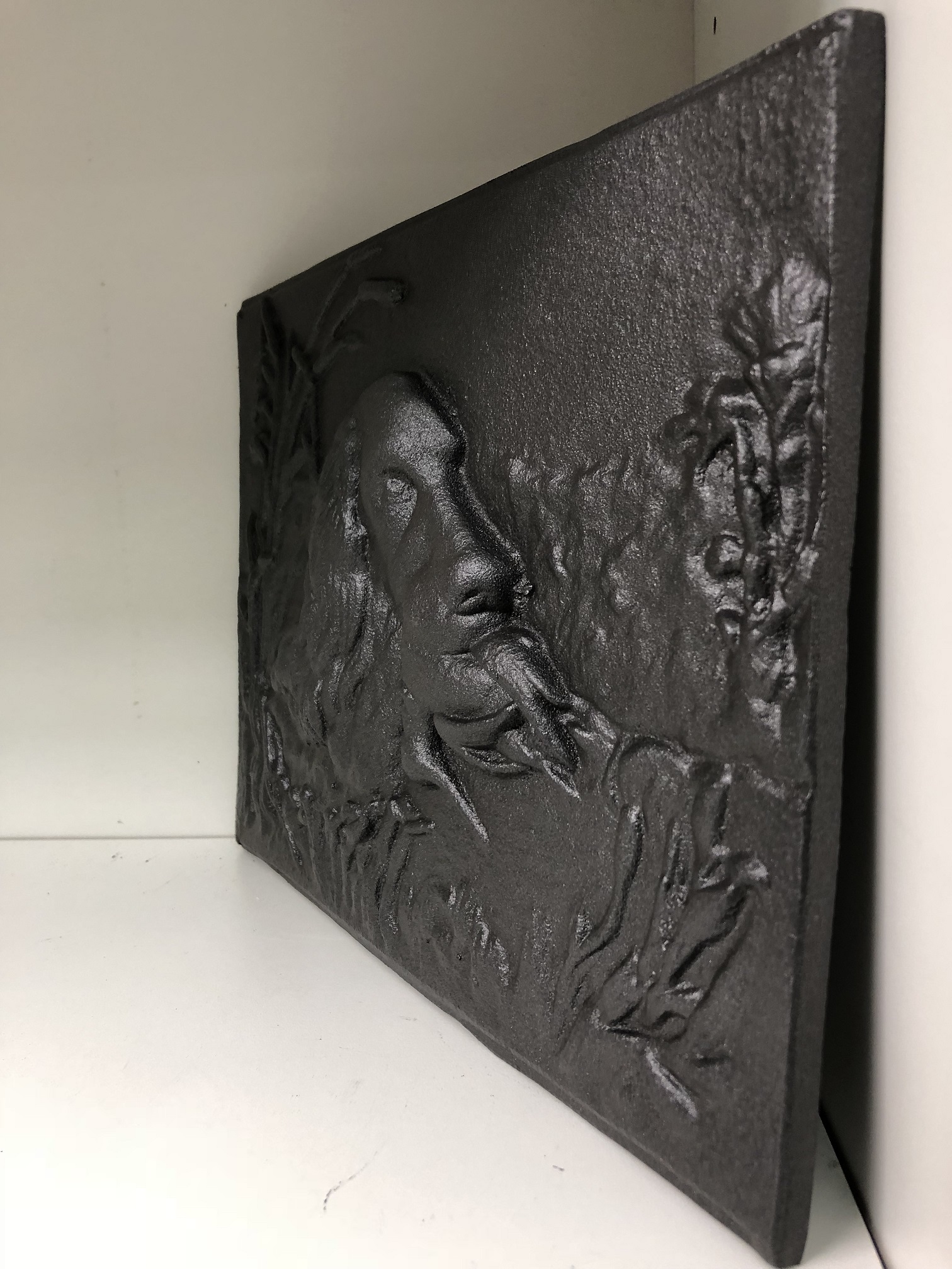 tegen de openhaard muur aan dan zal het tafereel door de hitte prachtig zichtbaar worden door het vuur heen. Deze plaat beschemt de openhaard muur ook nog is een keer.