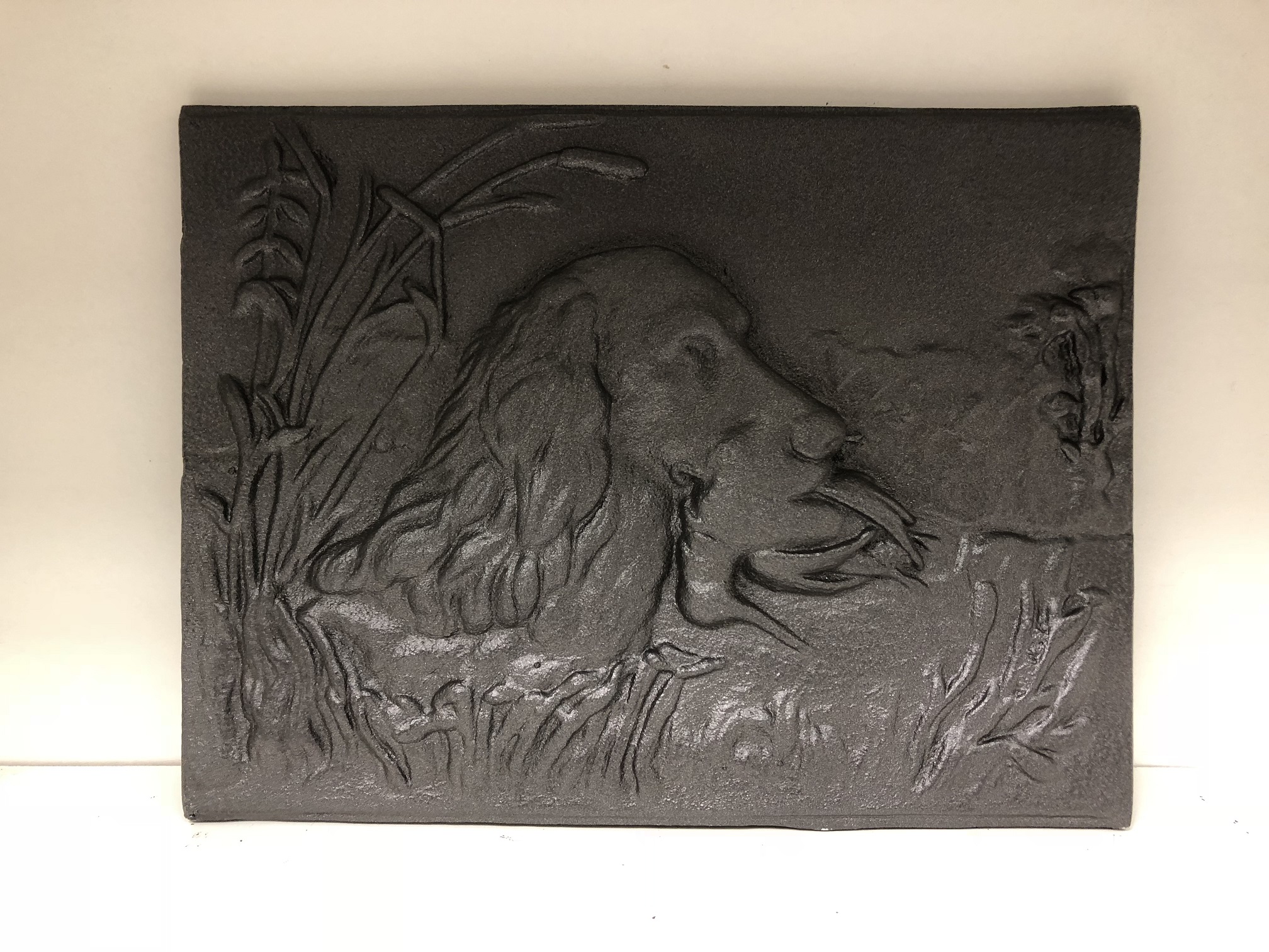 TAGS: wandornament gietijzer, jachttafereel, de jacht, jachthond, gietijzer, wandpaneel, dog, hond, etc.