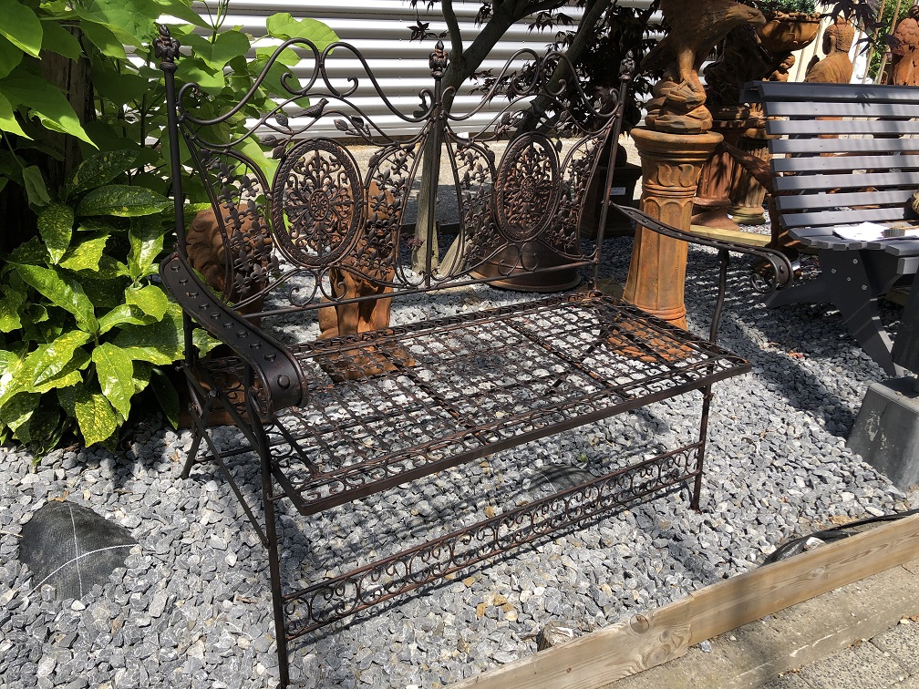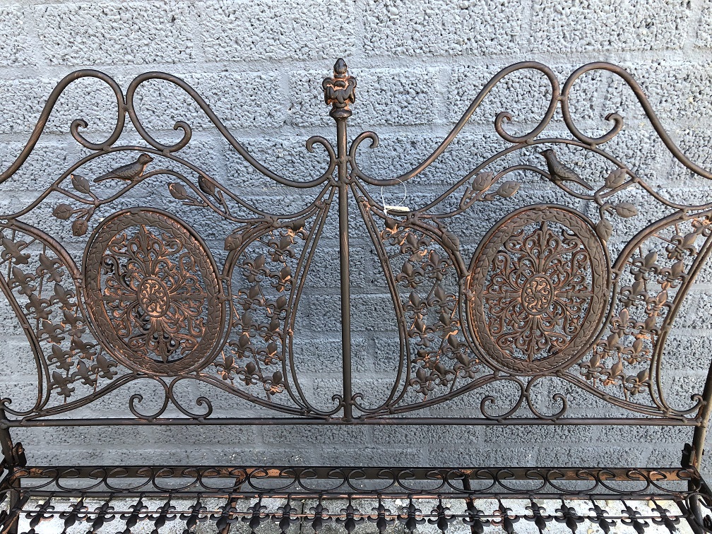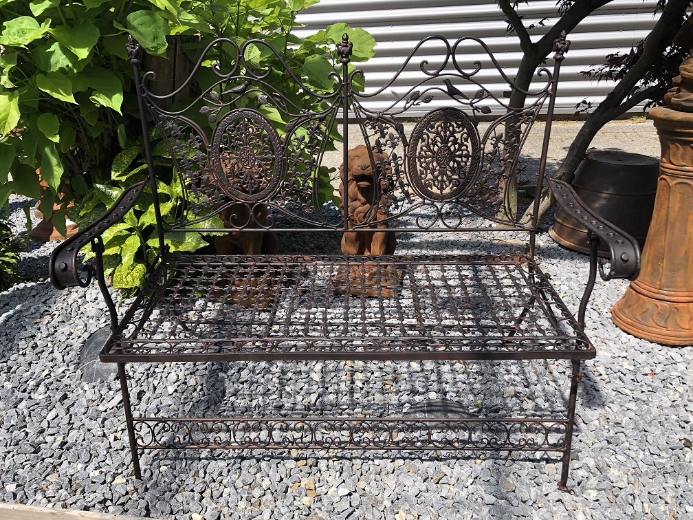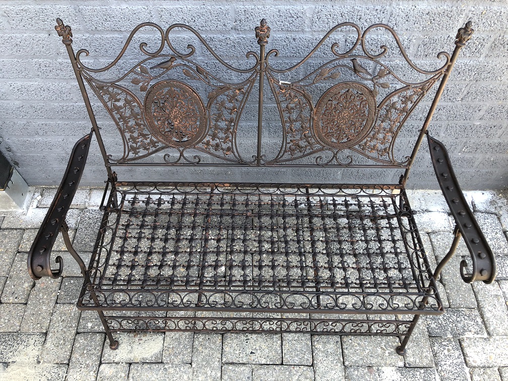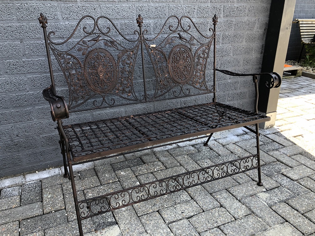 Prachtige pitoreske tuinbank smeedijzer, kleur bruin/rust.