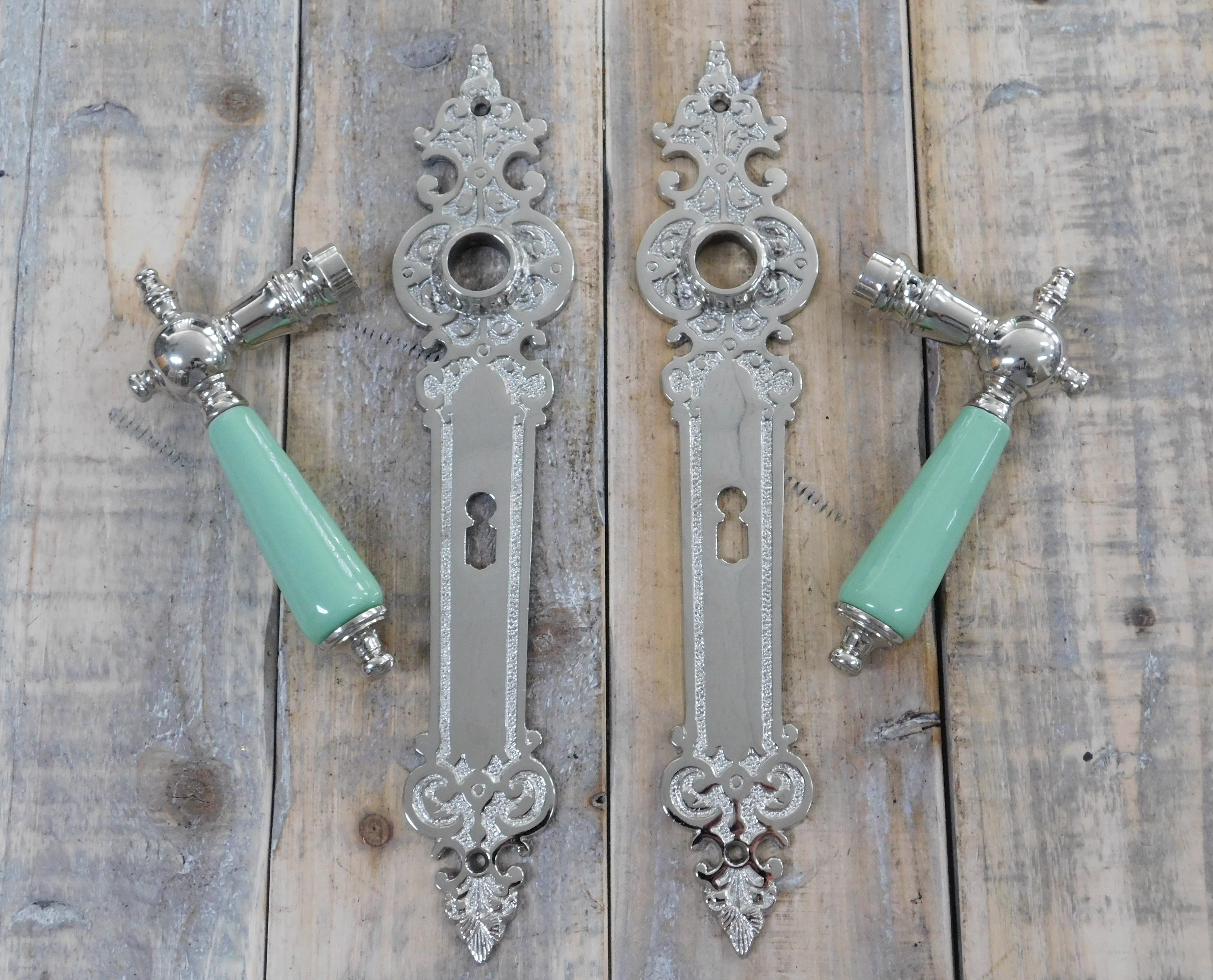 1 heavy Long iron doorplate with cylinder lock keyhole, PZ92 mm antique iron brown- founding era historicism. Long iron door plate iron brown, heavy duty, replica from last century period, copied from original antique. Makes your door a stylish eye-catcher. Beautifully decorated with matching handles which you can also order from this site. Histori...