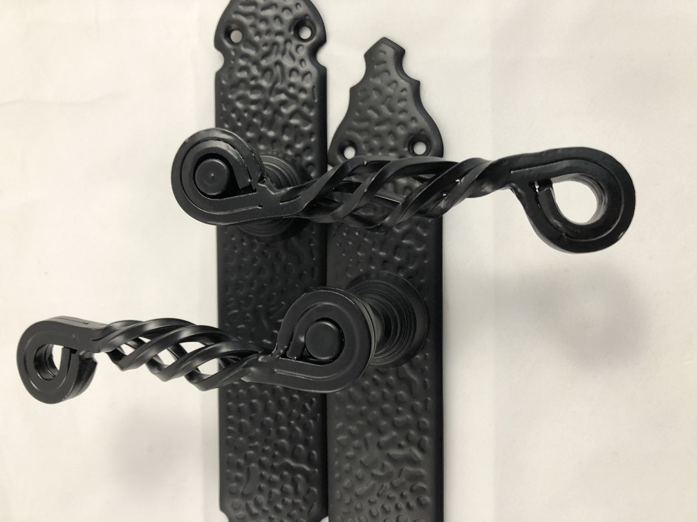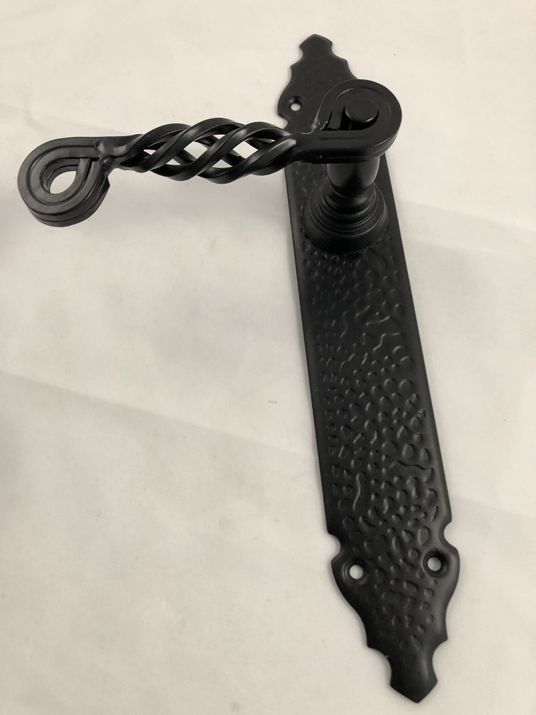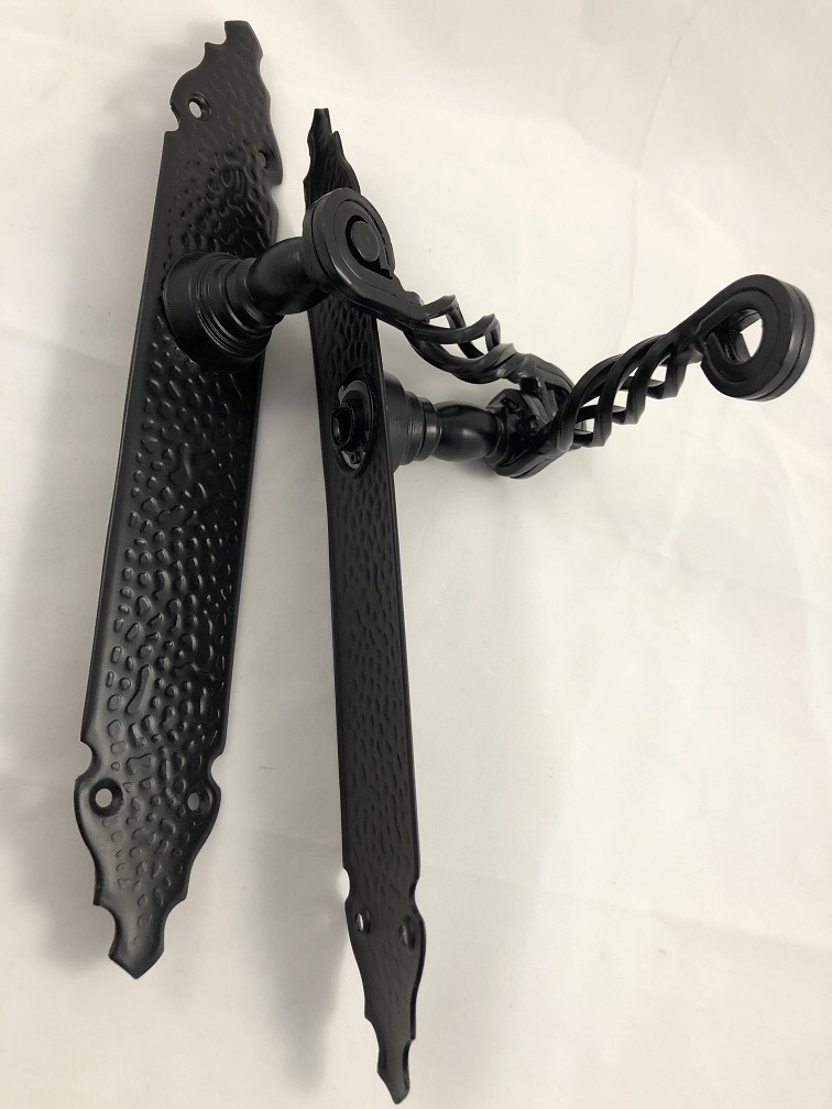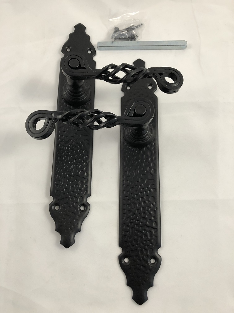 Set of front door hardware, beautiful wrought iron, black, closed door plate!