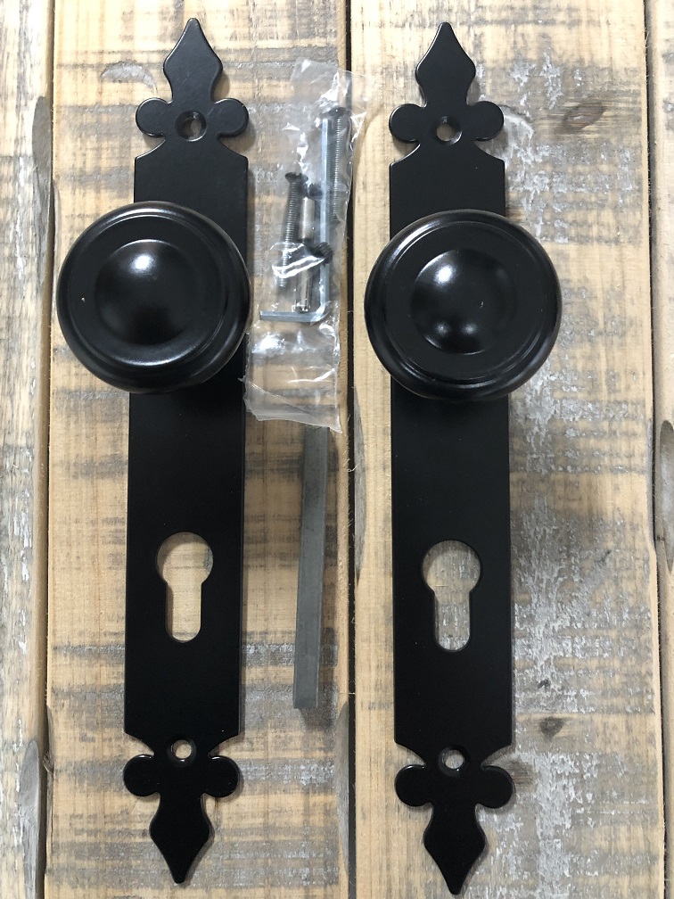 Scope of delivery: 1 set consisting of, 2 long door plate, 2 door knobs, screws and a mandrel.