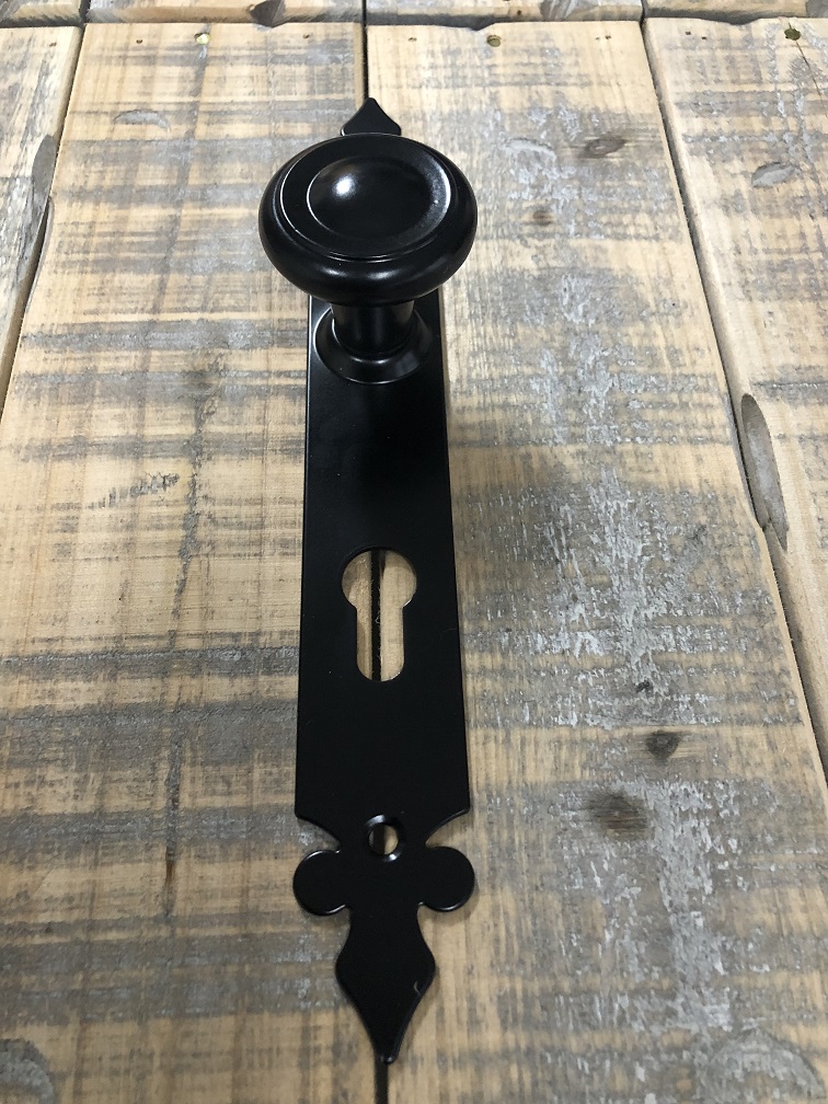 Beautiful set made of wrought iron! In the colour black, this set fits on many types of doors and will be a real mood enhancer for your home.
