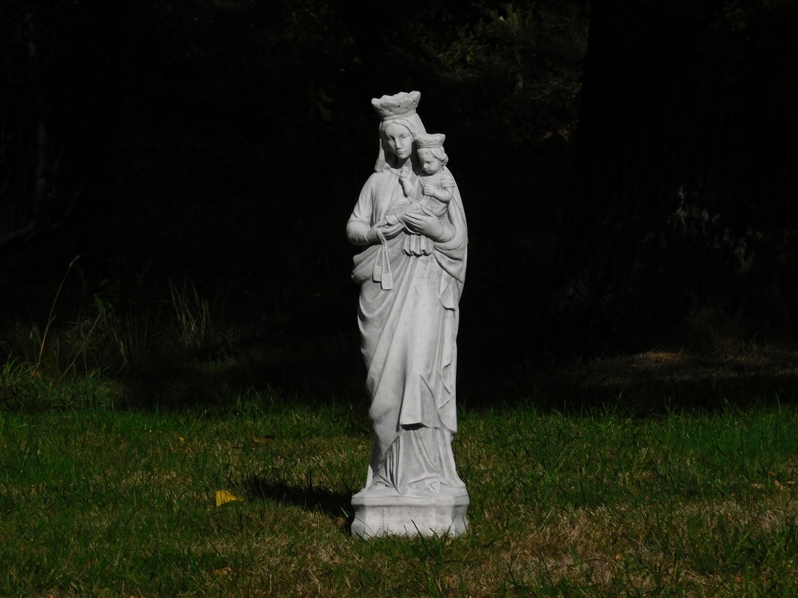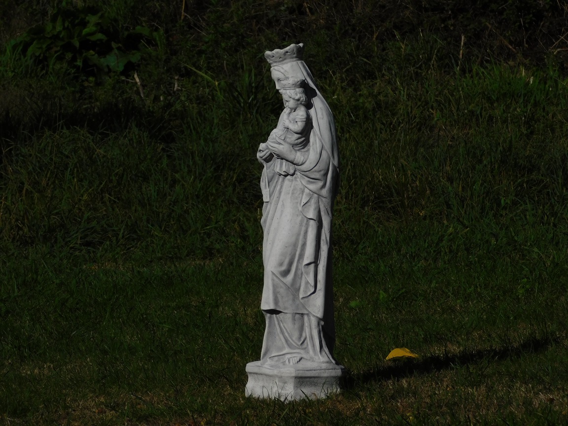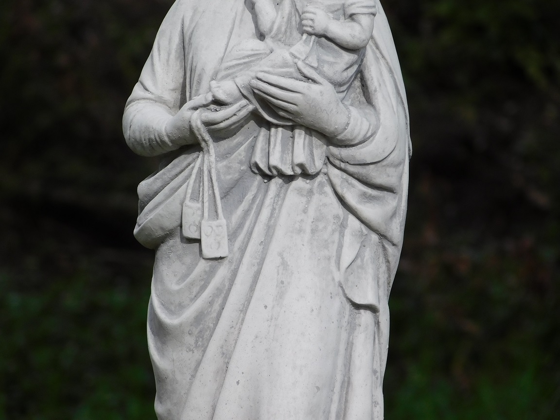 Beautiful statue of Mary with child on her arm.