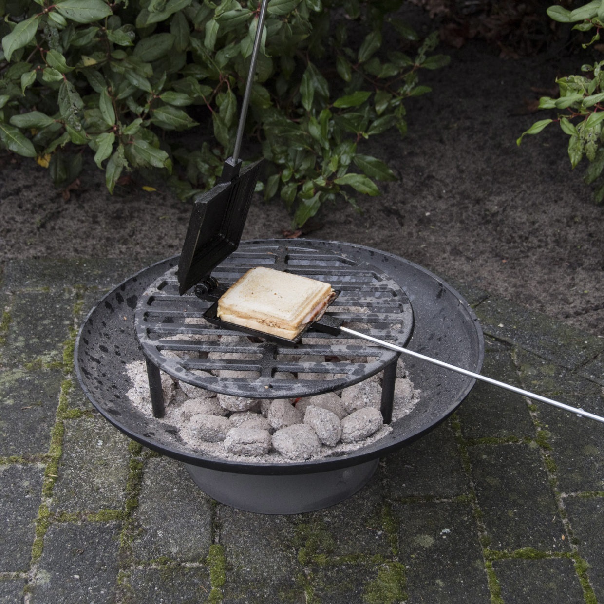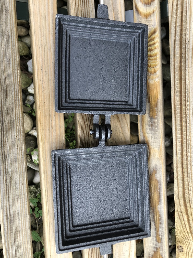 TAGS: open fire, campfire, cooking over fire, tosti iron, tostie cooking, toast iron, outdoor cooking, fireplace, stove fire, etc.
