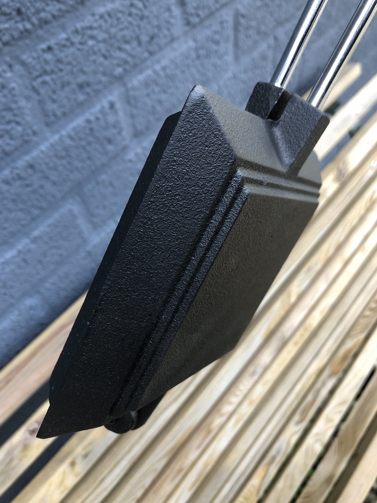 How nice is this, a nice long handle, kind of like tongs with a clamp, you add the sandwich between the irons and