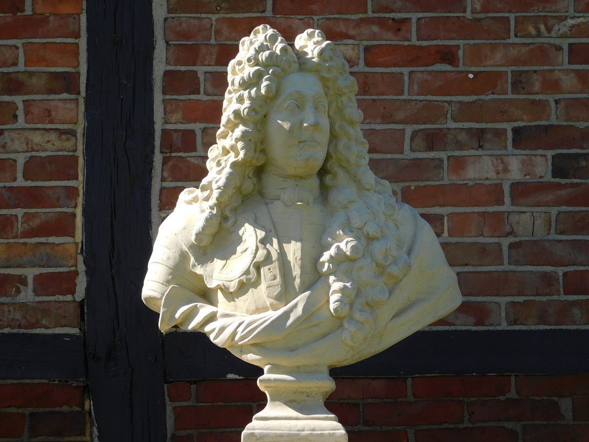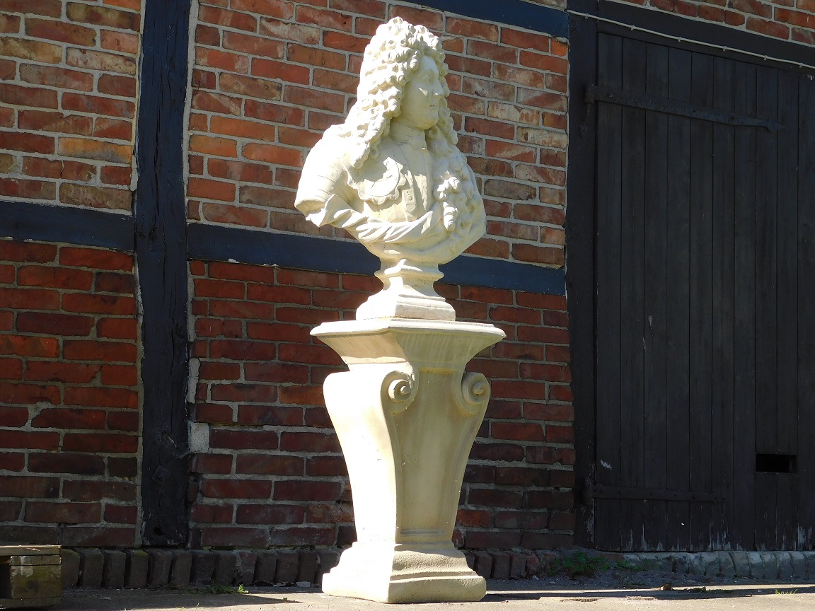 This imposing bust of Louis XIV on a pedestal is a true eye-catcher with a stately and classic appearance.