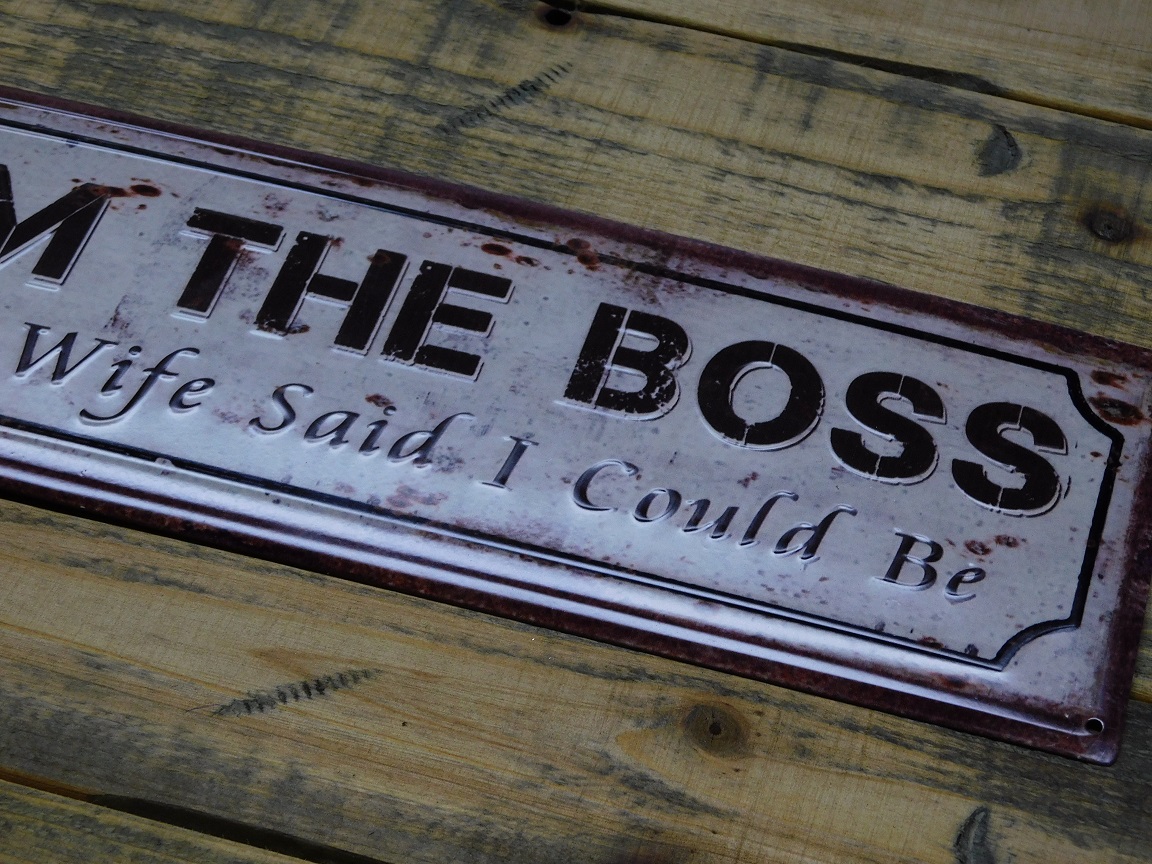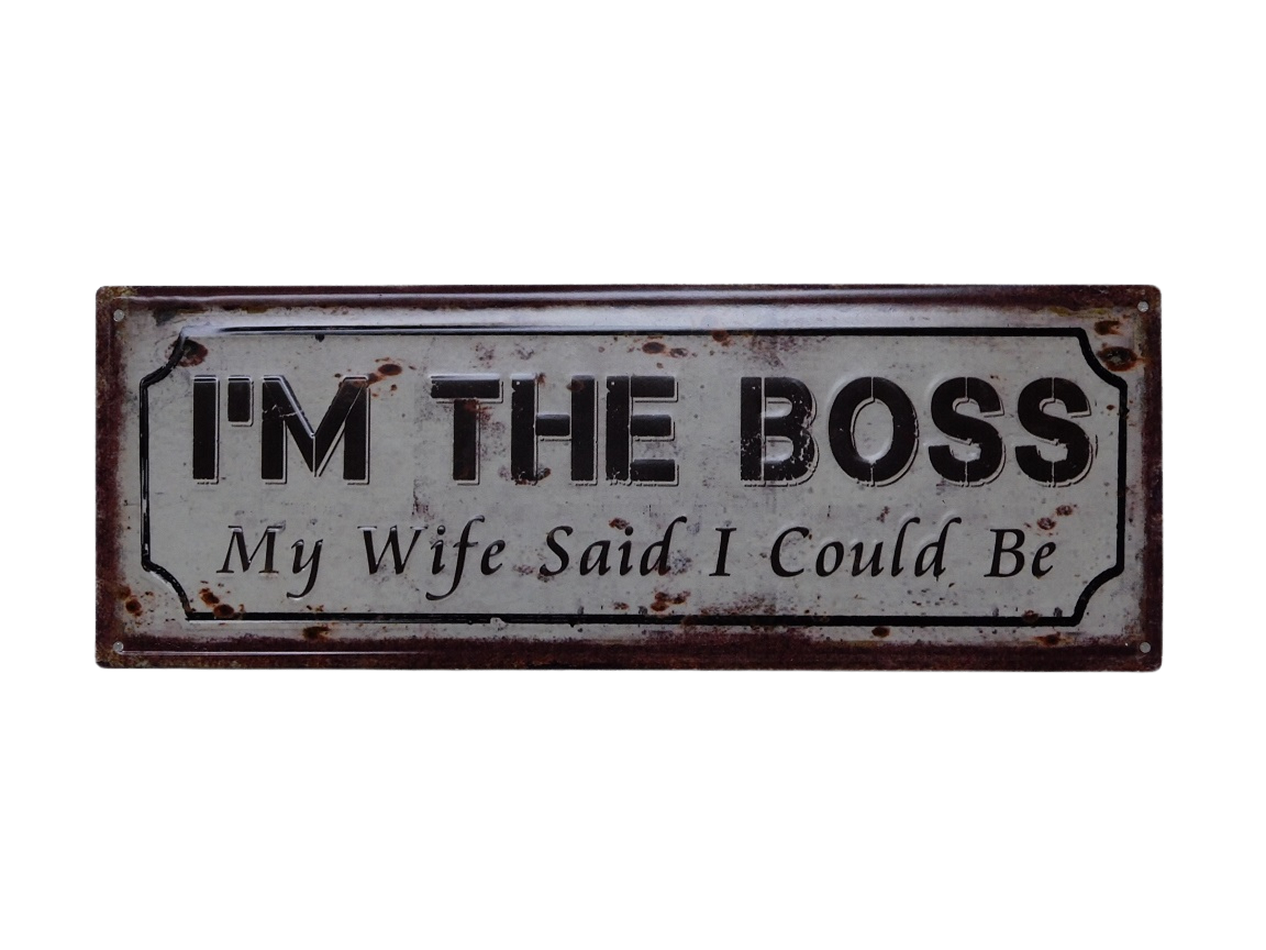 Het bordje draagt de grappige tekst: “I'm the boss – my wife said I could be”, waardoor het een leuk cadeau is voor vrienden, familie of jezelf.