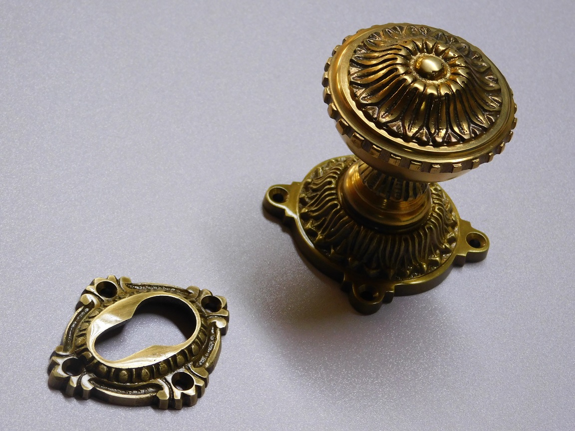 Leveringsomvang: 1x deurknop + knoprozet + slotrozet pc, messing