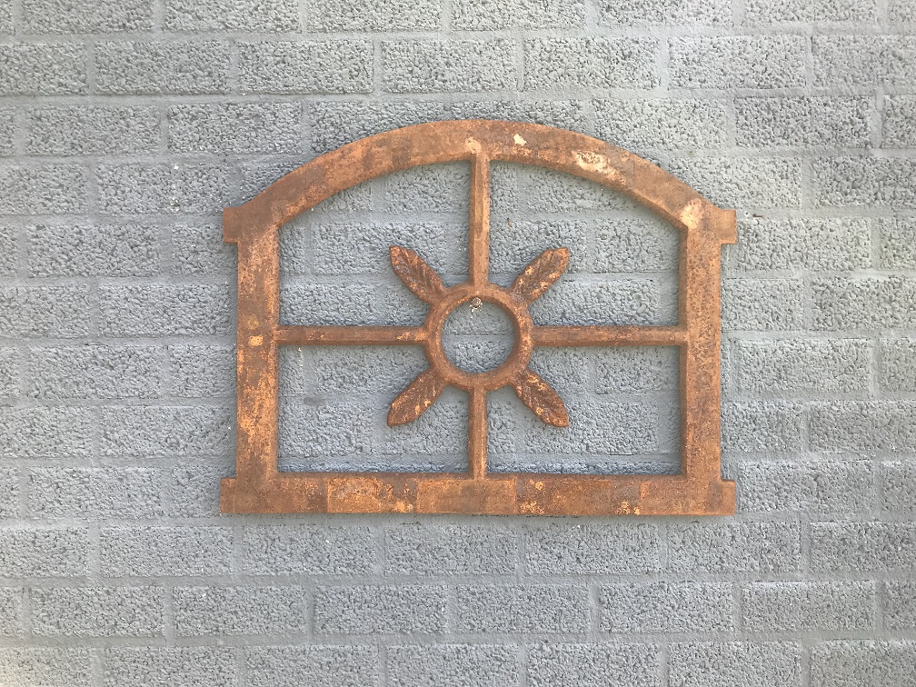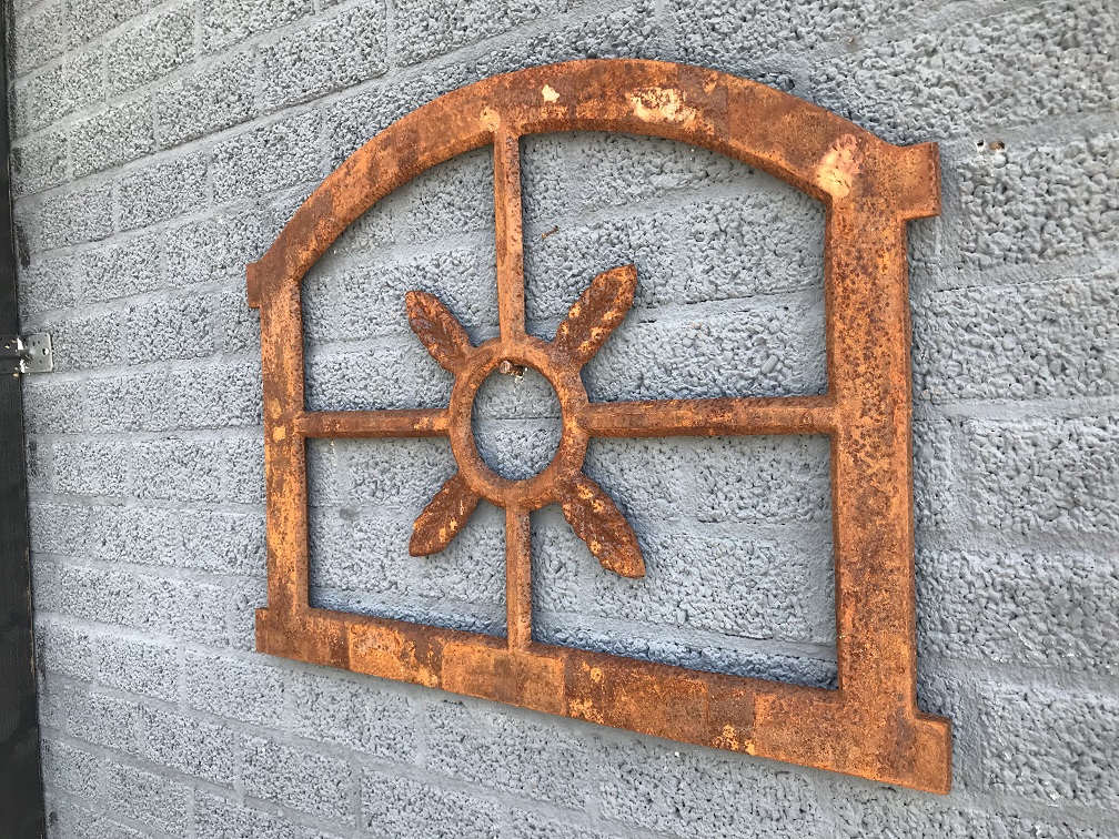 Gietijzeren stal-garage-raam, ijzervenster voor tuinmuur, Eiken raam groot.