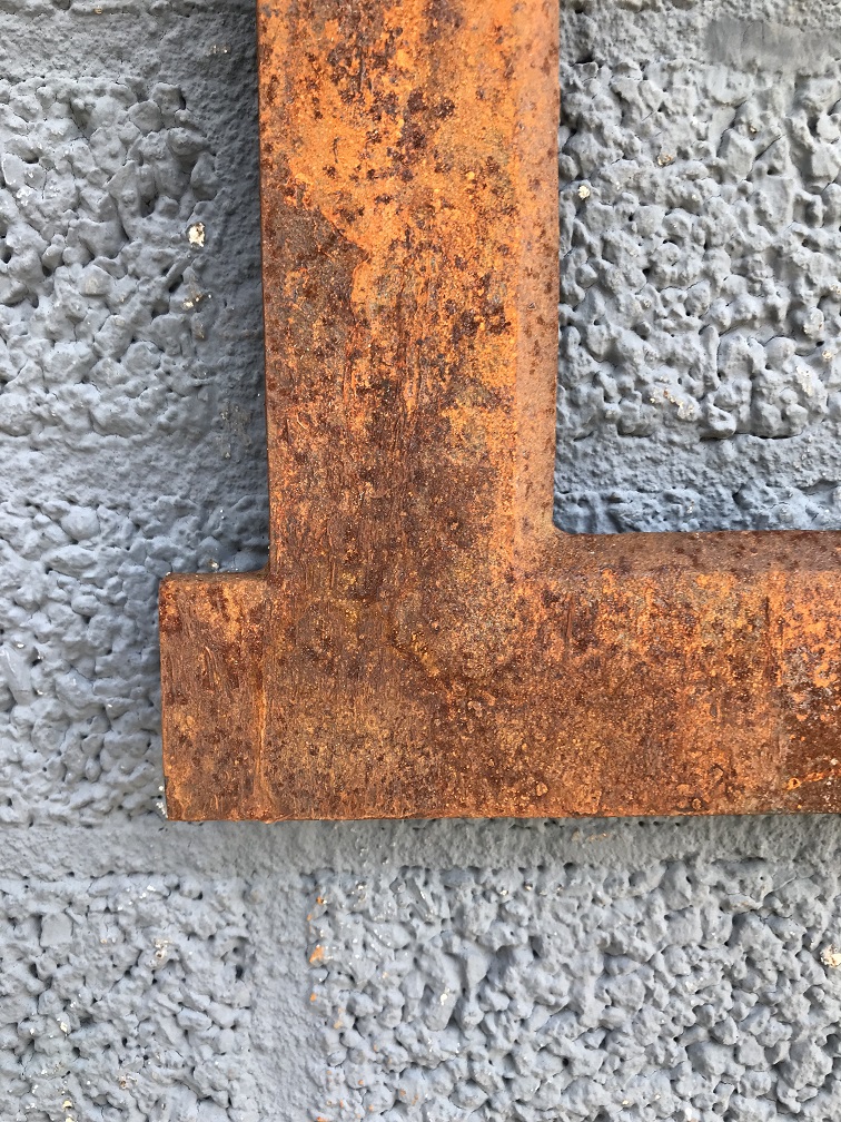 Het oppervlak, dat bedekt is met vliegende roest, heeft een levendige, rustieke uitstraling -