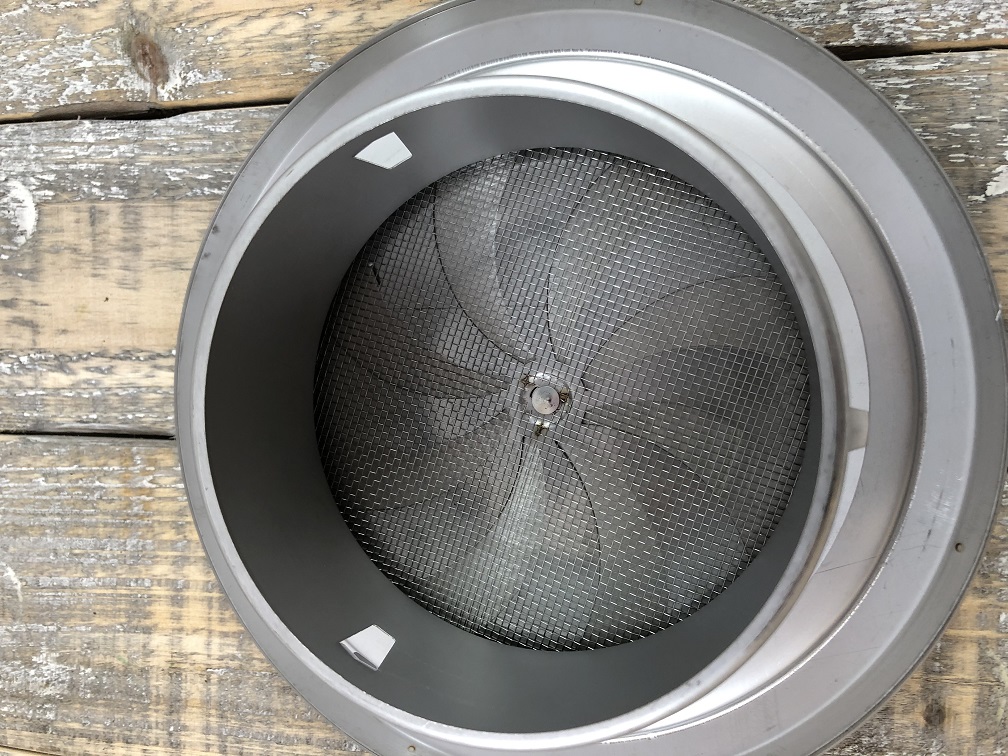 Mooi openhaard lucht rooster van RVS met vlieggaas als bescherming tegen insluip van ongewenste insekten.