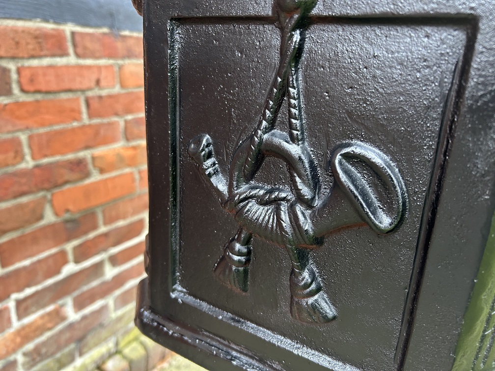 Het is uitgerust met historische sjabloon met een vastzetschoen om smeedijzeren ring.