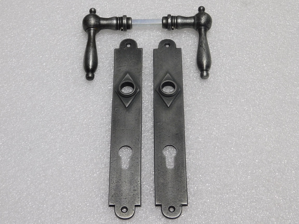 Set Deurbeslag - Klinken Cambridge + Deurplaten Prestige PC 92 - Gietijzer Verzinkt