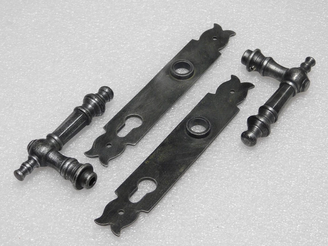 Set Deurbeslag - Klinken Victoria + Deurplaten Noble PC 92 - Gietijzer Verzinkt