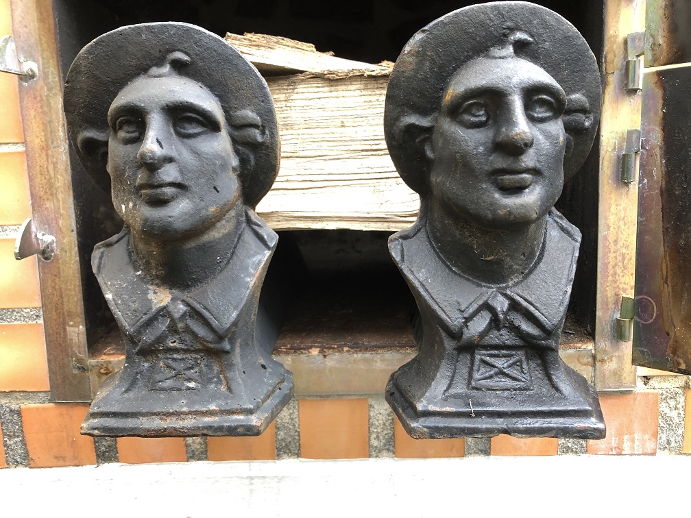 Levering: 1 set van 2 openhaard blokken gietijzer gentlemen.