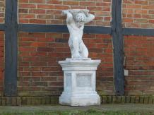 Maak een statement in je tuin met dit prachtige beeld van Sint-Hubertus, nu verheven op een bijpassende sokkel voor een totale hoogte van 205 cm.