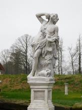 Dit indrukwekkende tuinbeeld, volledig vervaardigd uit steen, belichaamt de symboliek van de heilige patroon van jagers, opticiens, boogschutters e...