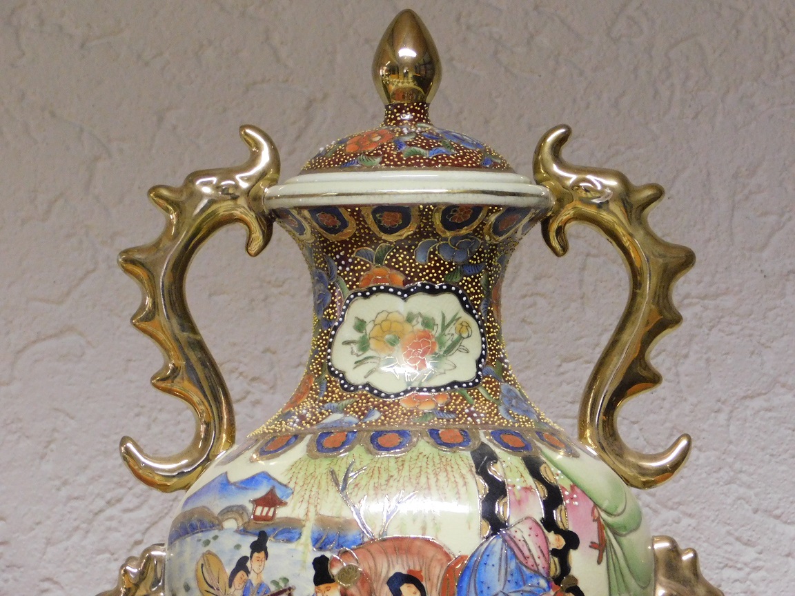 Vintage Vaas - 50 cm - Satsuma-stijl - Handgeschilderd porselein
