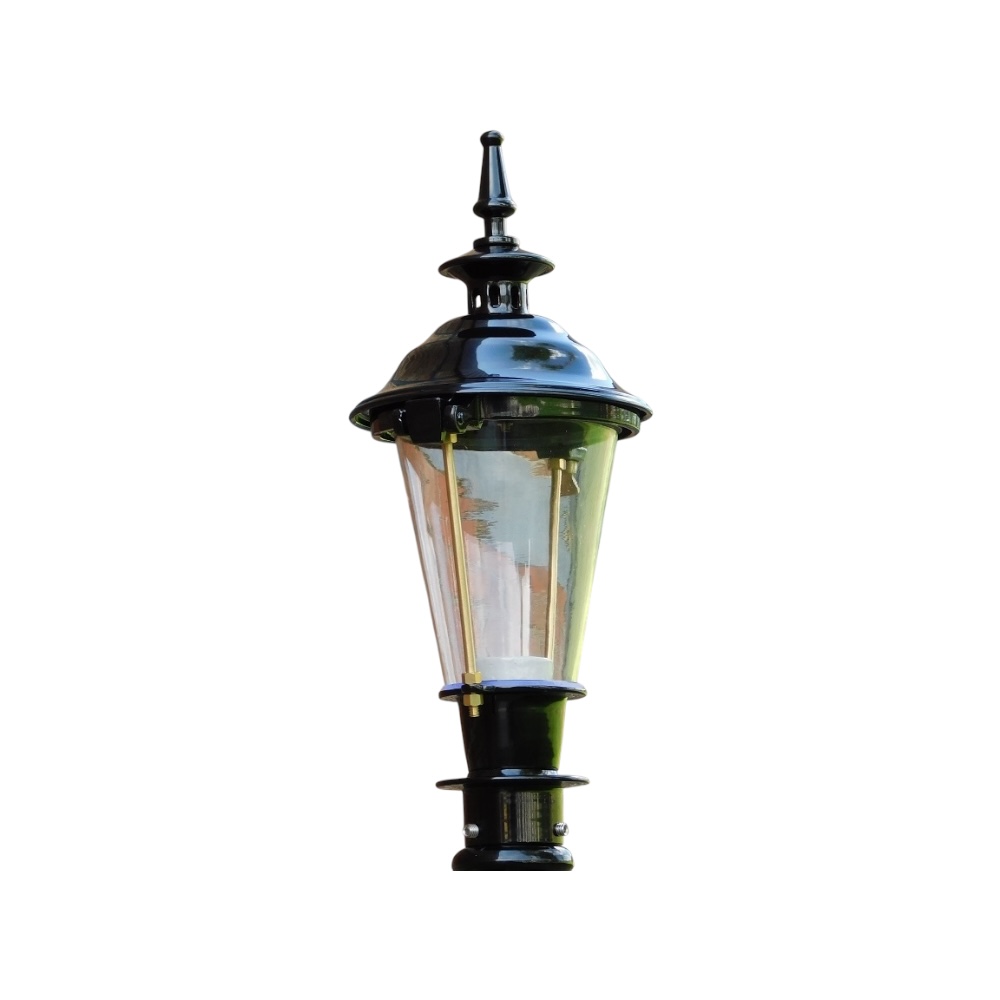 Het ontwerp van de lantaarnpaal is zorgvuldig vervaardigd met oog voor detail, waardoor het een verfijnde en nostalgische uitstraling heeft.